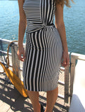 Striped fitted dress, with front knot.