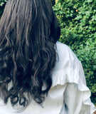 Cotton oversized button up with ruffles, pockets and an inspiring message.