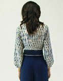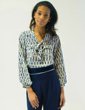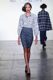 Wide-leg jumpsuit, with ruffles at the shoulder.