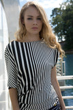 Draped asymmetrical blouse, made of a comfortable striped fabric.