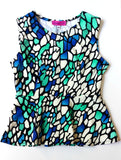 Tank top peplum blouse, made of a comfortable scuba knit fabric.